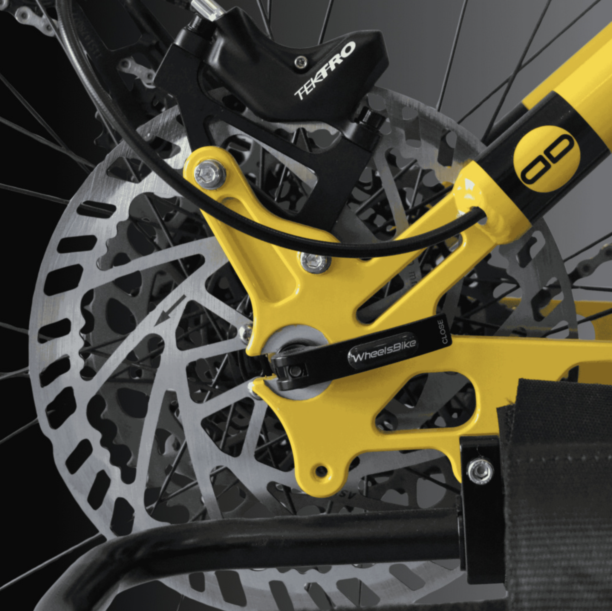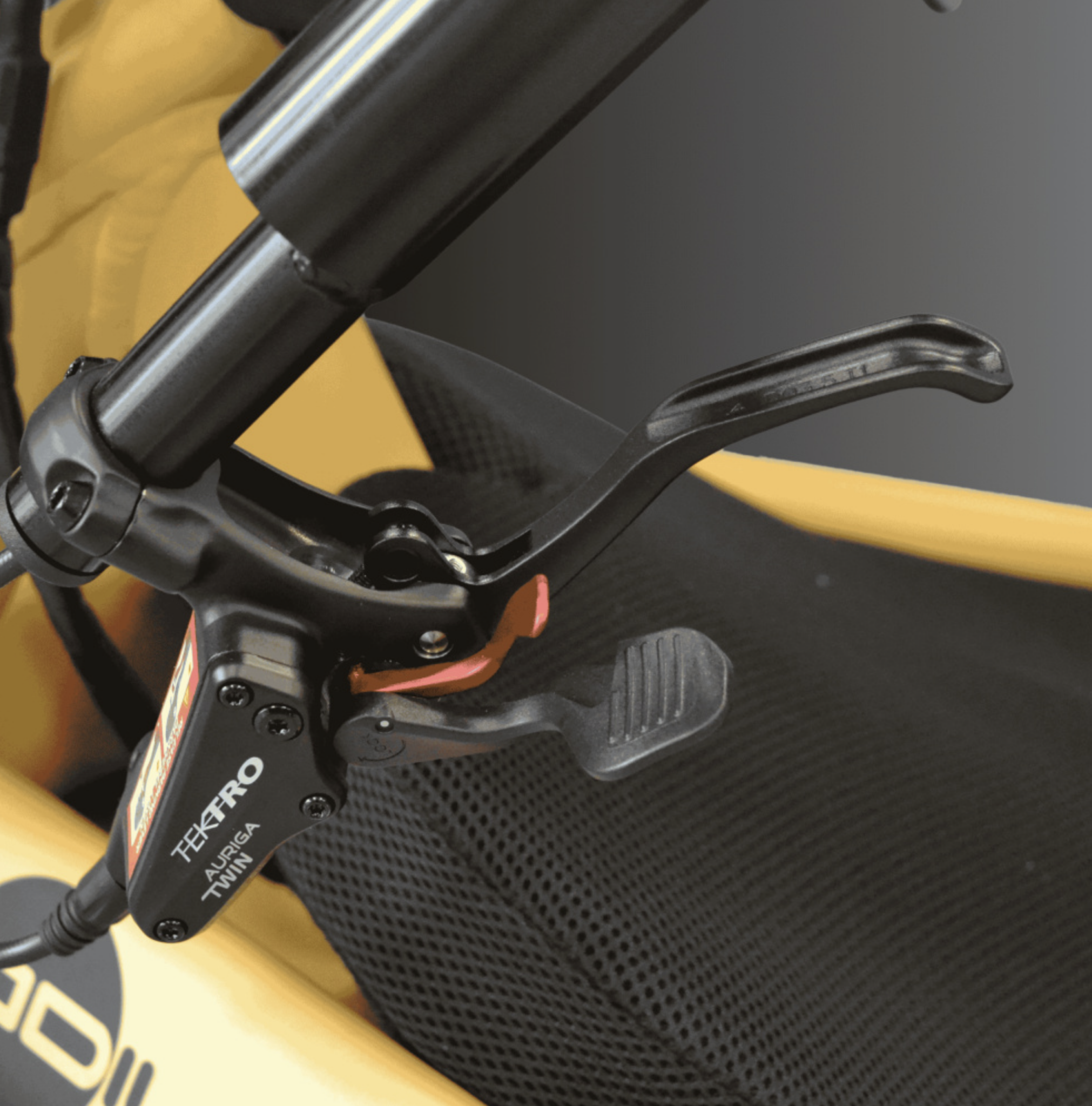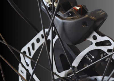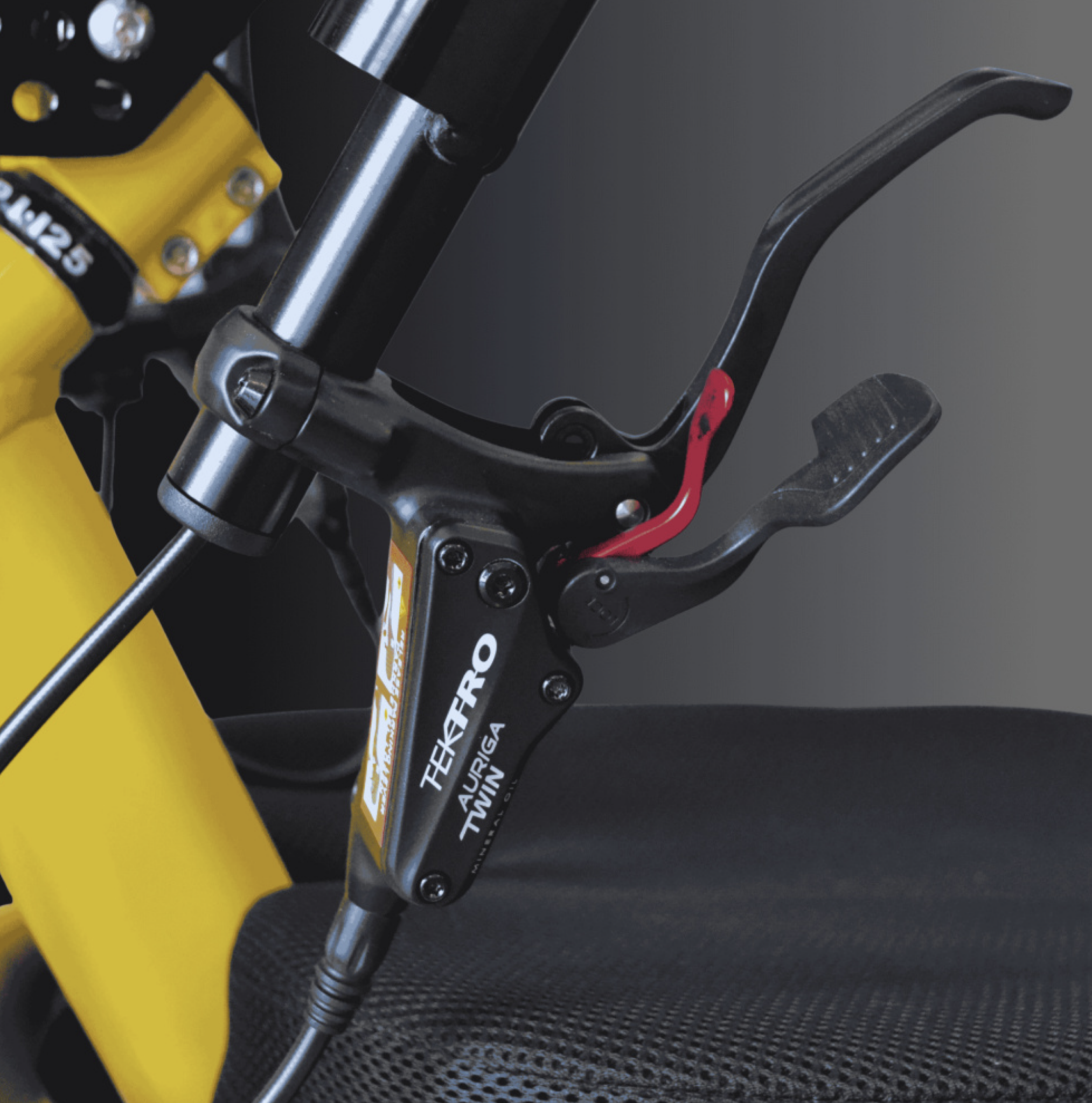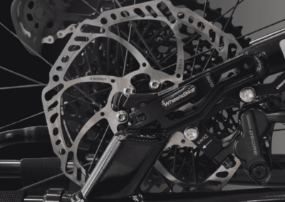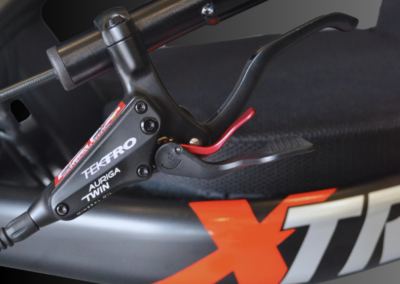 - 3 freins à disques hydrauliques (2x180mm avec étriers mono piston / 1x220mm avec étrier 4 pistons)