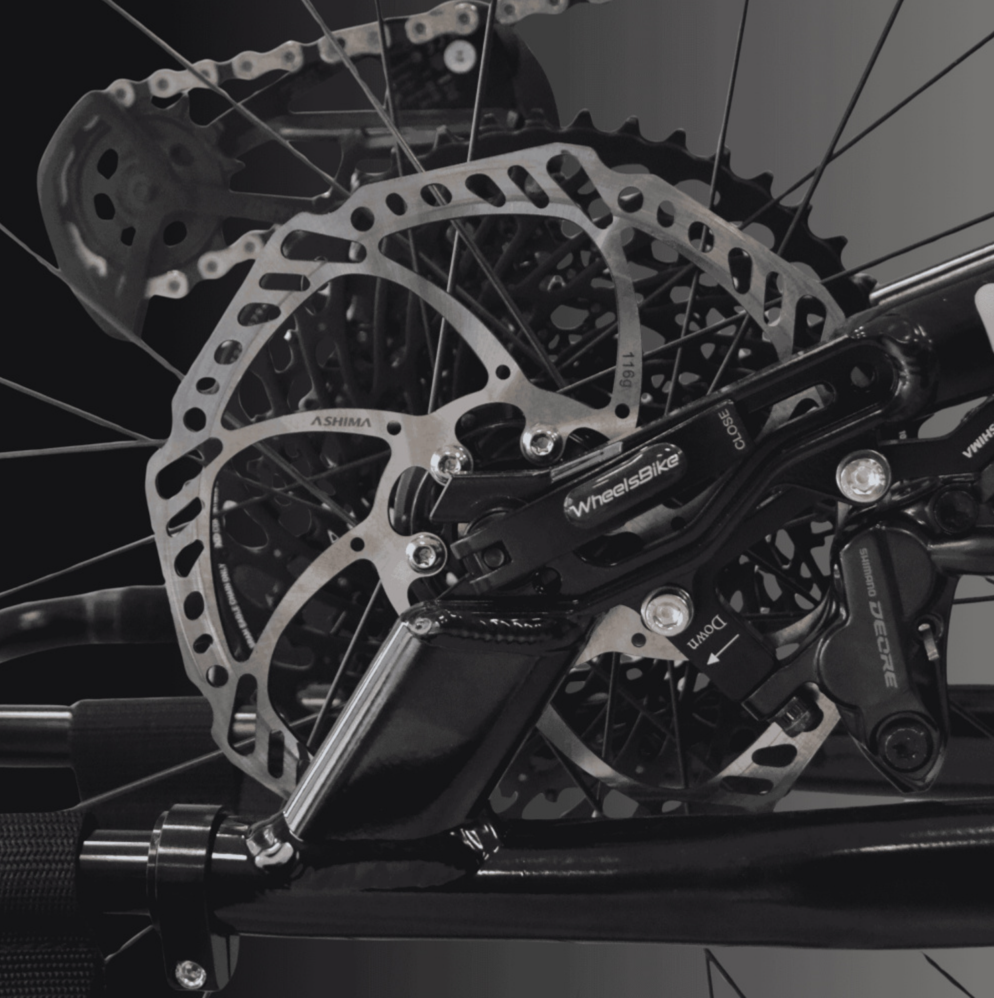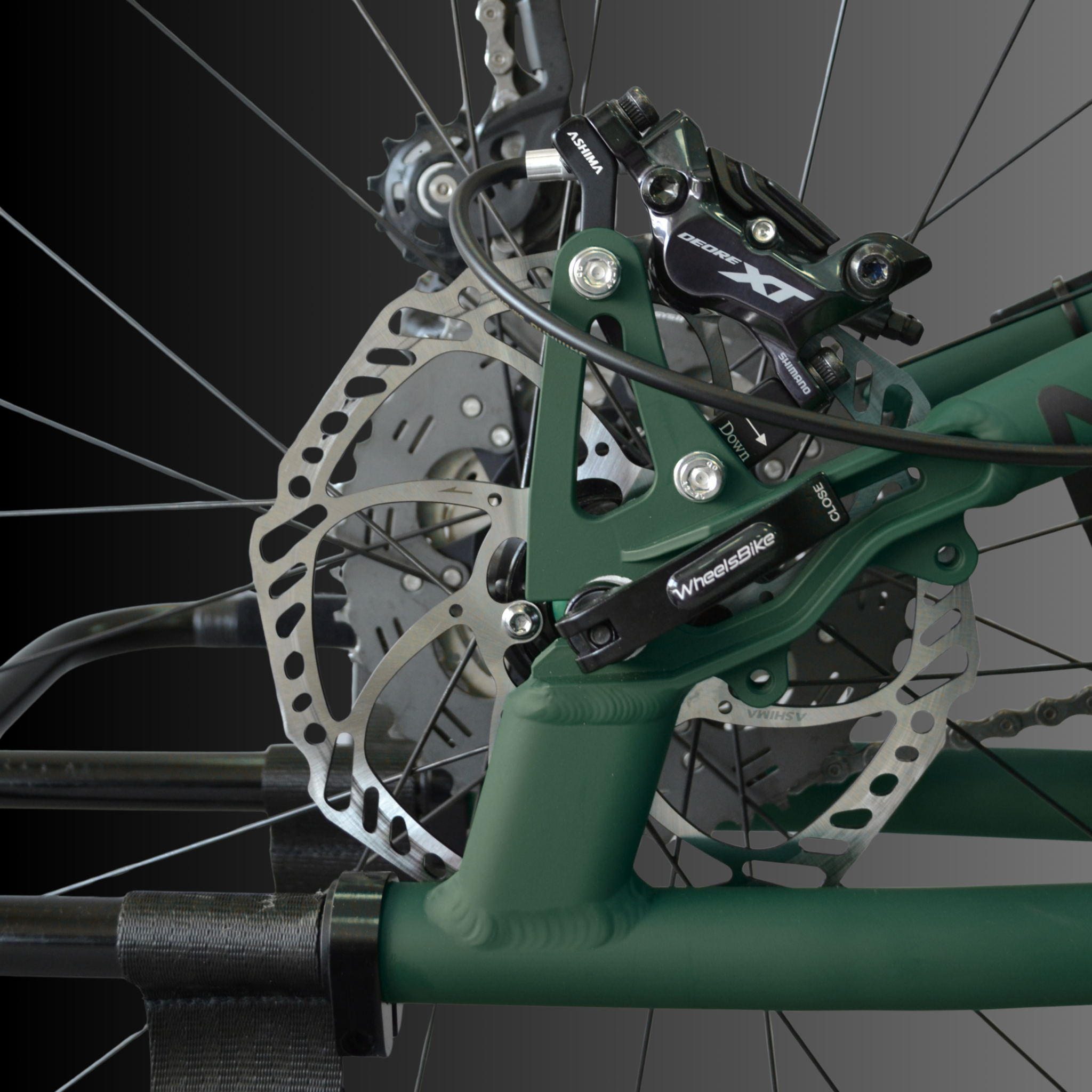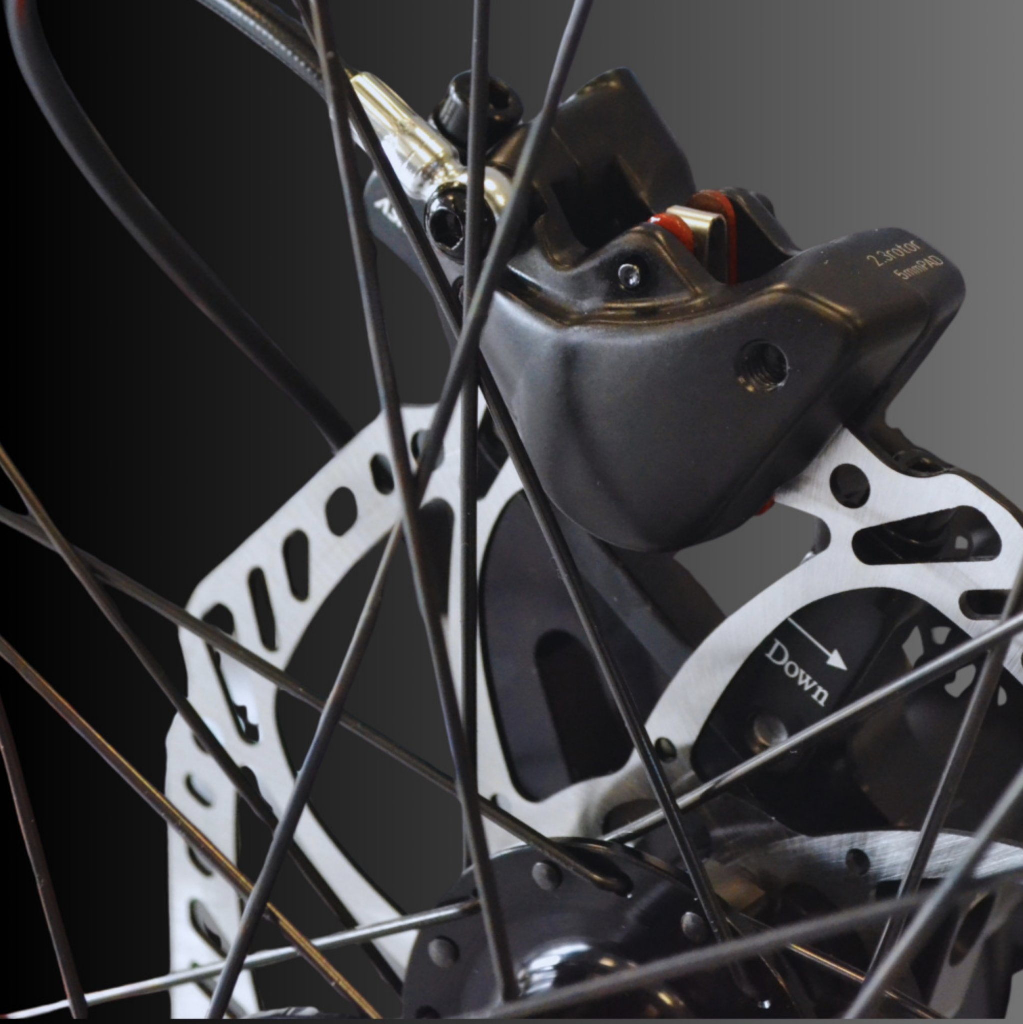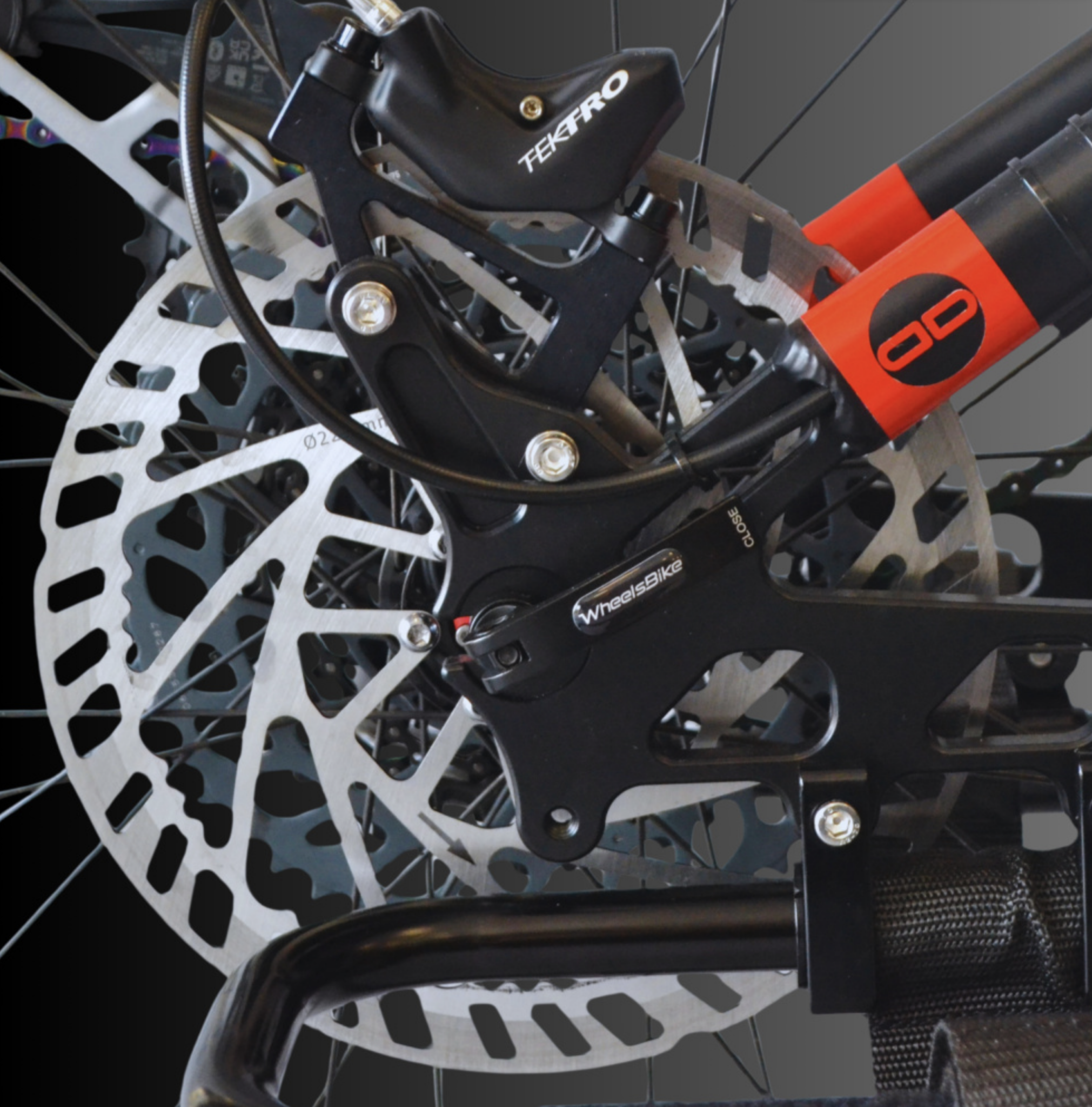 - 3 freins à disques hydrauliques (2x180mm avec étriers mono piston / 1x220mm avec étrier 4 pistons)